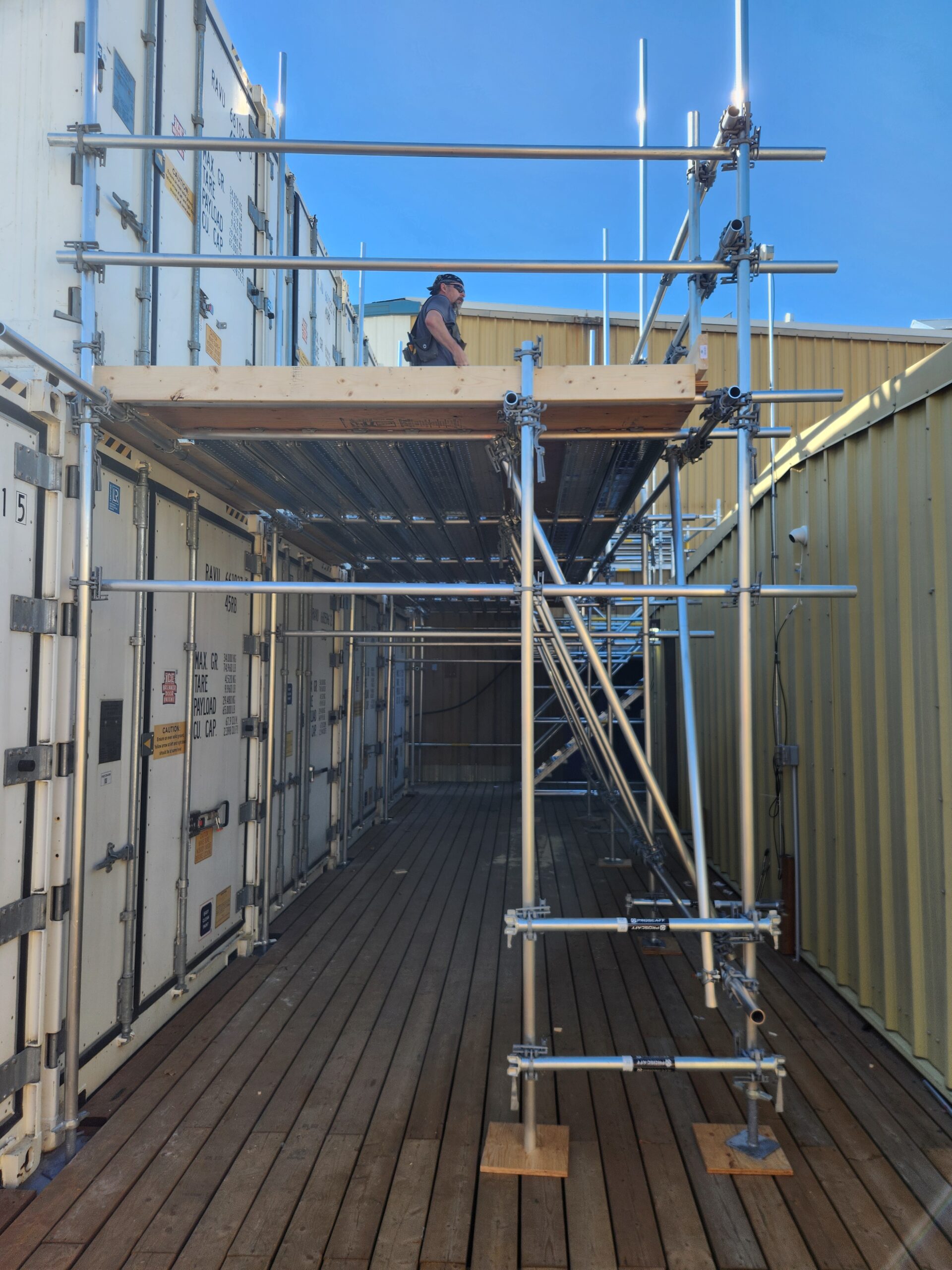 This project reinforced the importance of designing access systems around both safety and functionality. Even simple container stacks can present complex access challenges, but with careful planning and the right scaffolding strategy, it’s possible to achieve a safe and efficient work setup that adapts to the site’s needs.